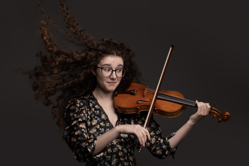 A classical musician in a double act with her violin